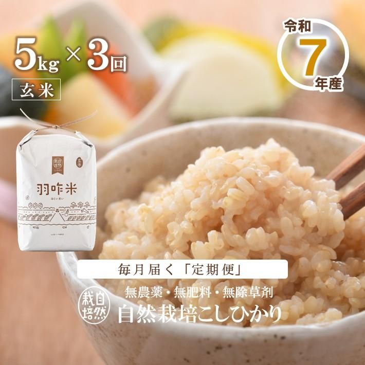 【12月発送開始】【定期便】 T010 【無農薬】能登のこだわり自然栽培こしひかり『羽咋米(玄米)』 5kg×3回コース T010