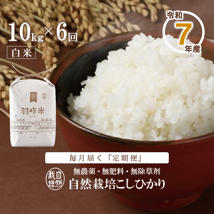 【12月発送開始】【定期便】 T019 【無農薬】能登のこだわり自然栽培こしひかり『羽咋米(白米)』 10kg×6回コース T019