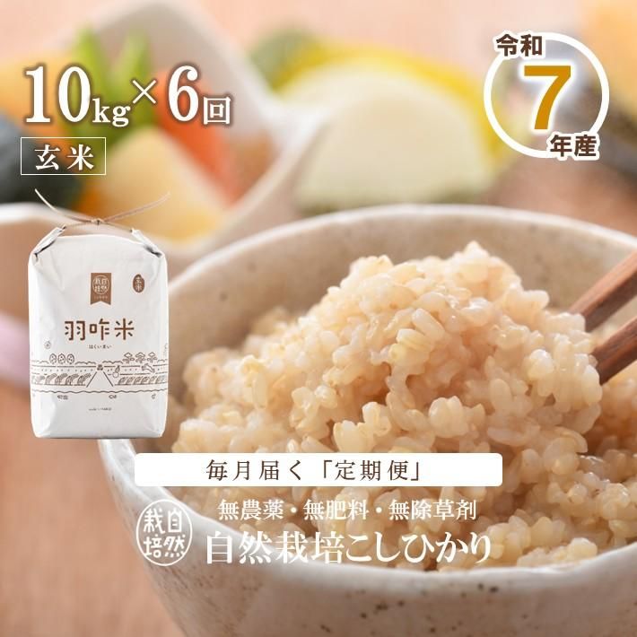 【12月発送開始】【定期便】 T020 【無農薬】能登のこだわり自然栽培こしひかり『羽咋米(玄米)』 10kg×6回コース T020