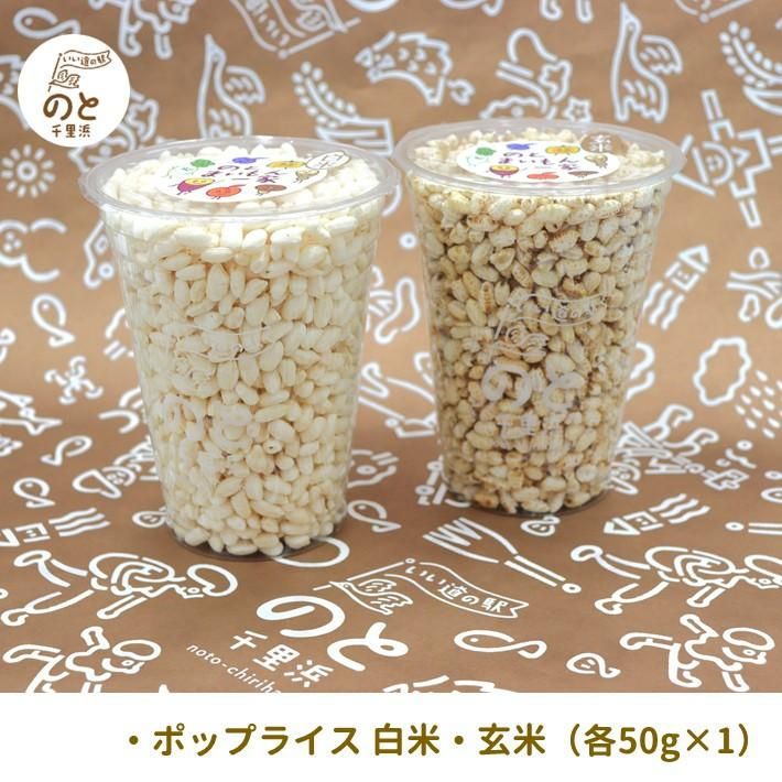 ■ポップライス(白米・玄米):羽咋市産の自然栽培のお米を使った昔ながらのポン菓子。お米のうまみとほんのり砂糖の甘さを感じるお菓子です。
